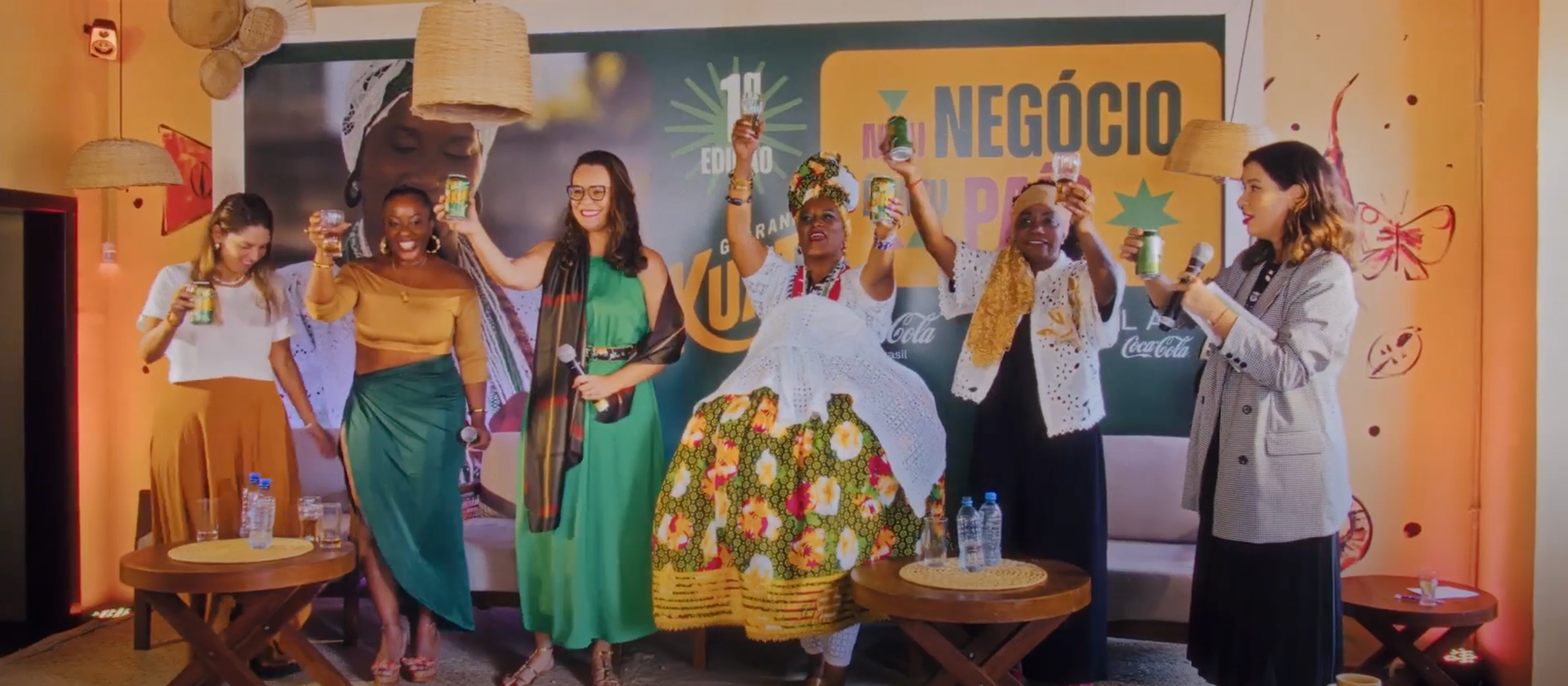 Criamos para Kuat uma plataforma de apoio para pequenas empreendedoras chamada Meu Negócio é Meu País. Nela, capacitamos e impulsionamos 30 microempresas locais de mulheres a se qualificarem de forma estratégica para o mercado. Prêmio Potências Negras Campanha do ano 1 ouro