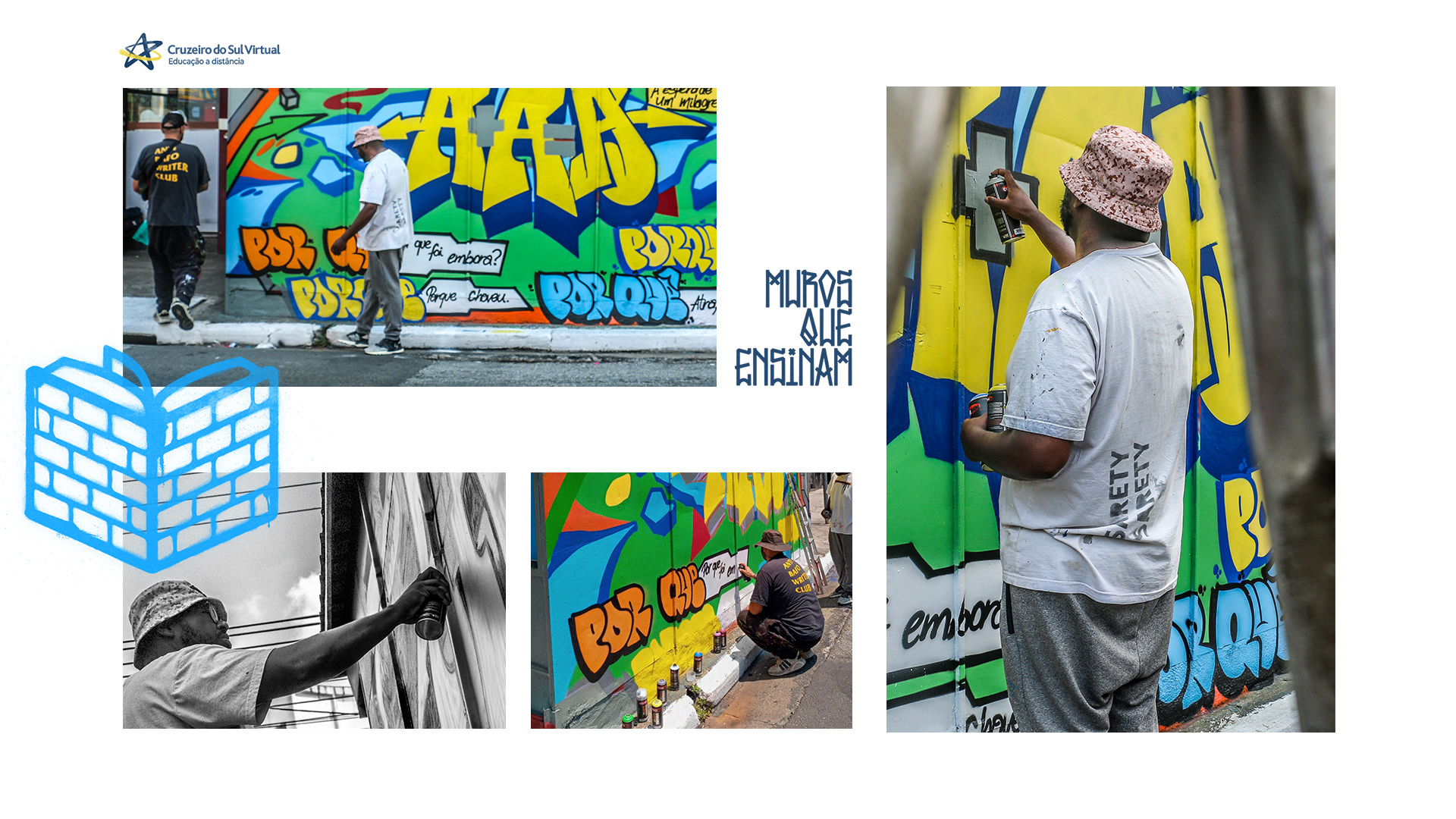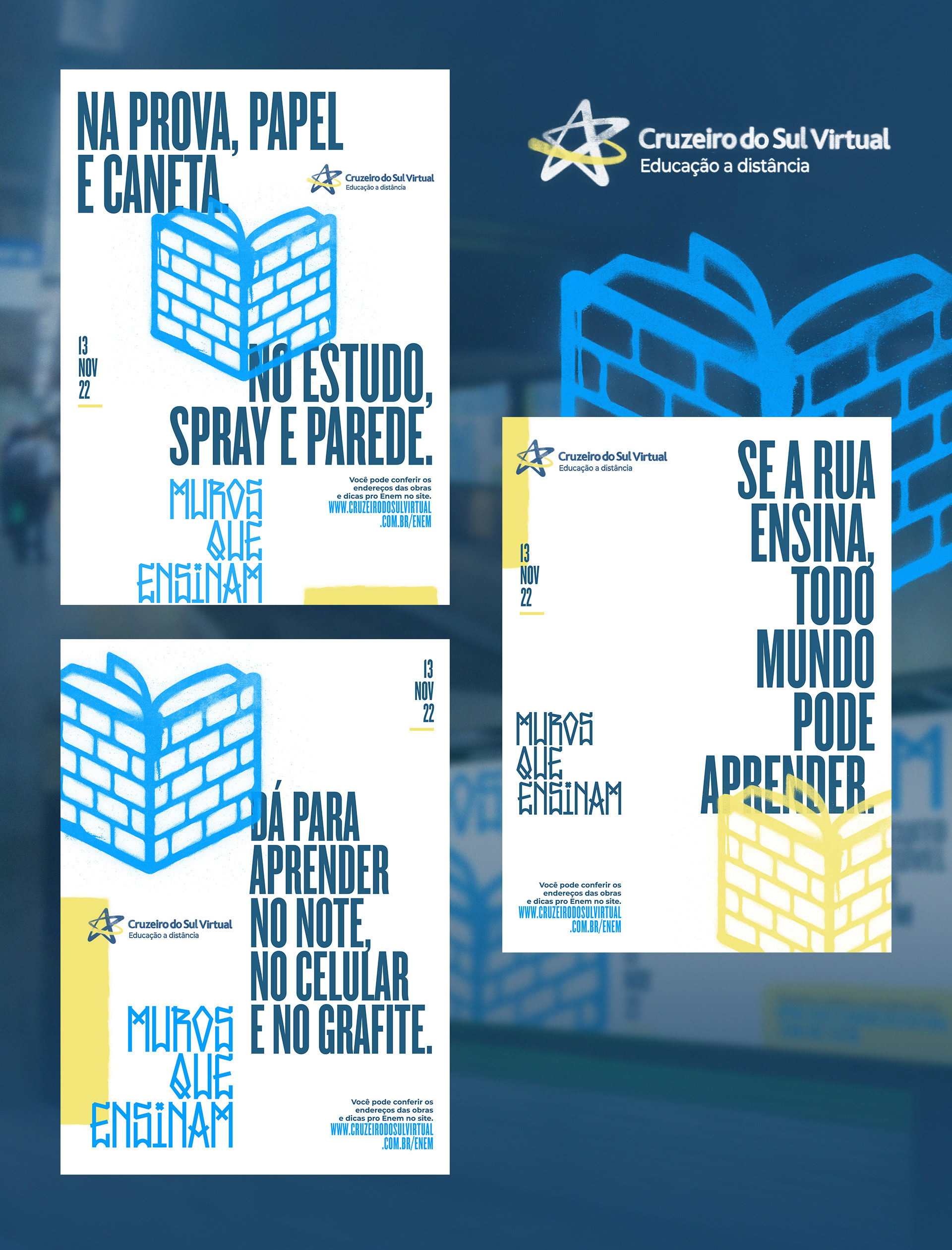 Muros que Ensinam” é um projeto da Cruzeiro do Sul Virtual que transforma muros em pontos estratégicos de São Paulo em grandes aliados para o Enem. A ação reúne um circuito de 10 grafites espalhados próximos aos locais de prova, trazendo dicas e conteúdos relevantes para apoiar os estudantes em seus trajetos até o exame.